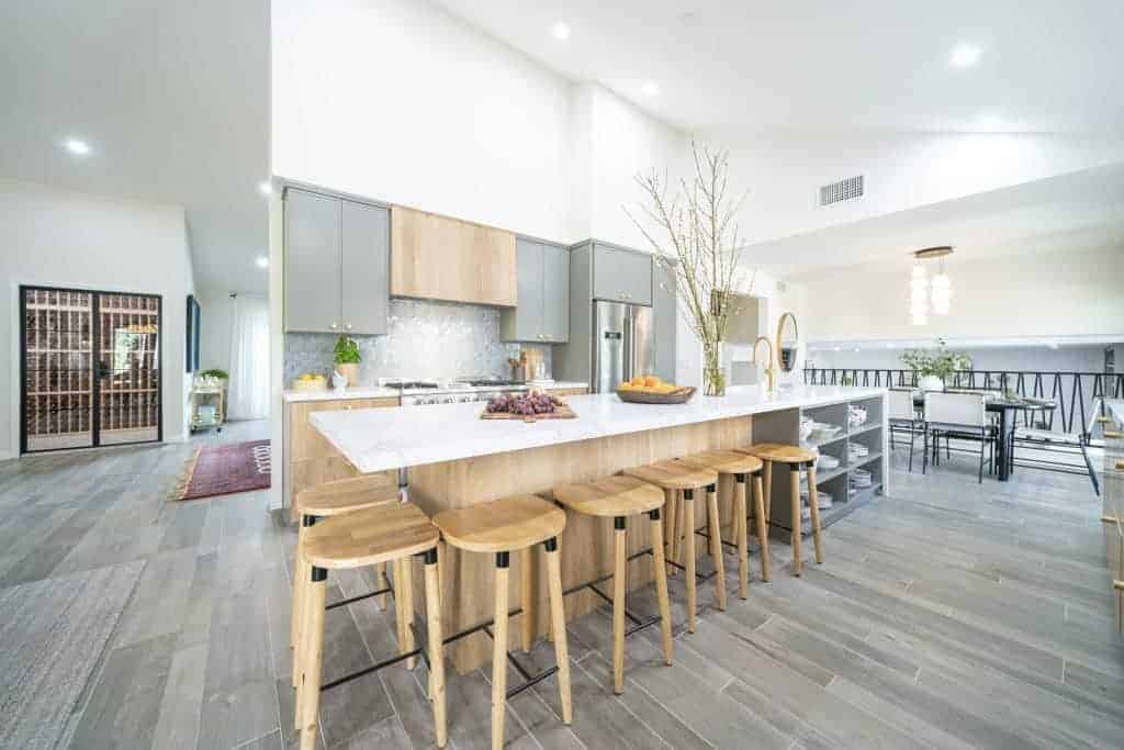 The original kitchen’s island was so small, it seemed like a baby version of itself. Once we raised the ceiling and extended the existing flooring, we were able to install the much larger island they craved.