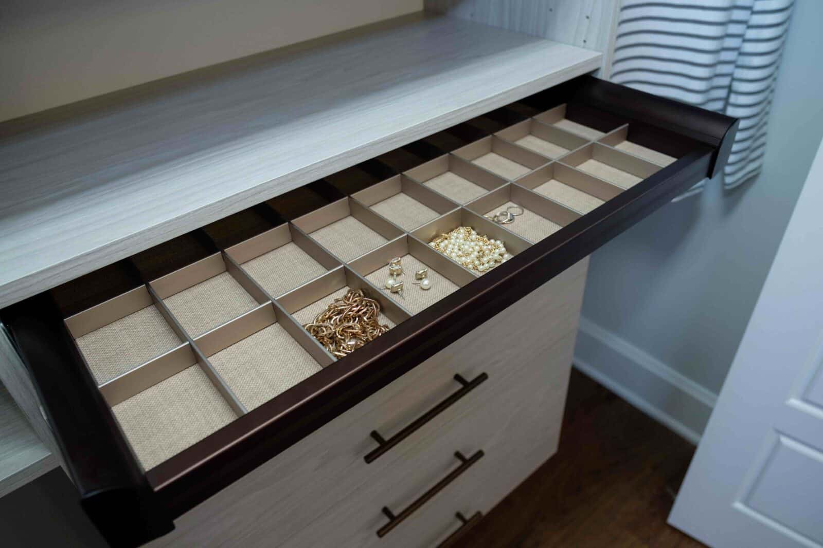 Ilca was storing her pearls in a kitchen cabinet—clearly, this home was lacking in the organization department. A custom closet organization system in the master bedroom (this one has a pull-out tray for jewelry and small accessories) provides functionality, value, and peace of mind.