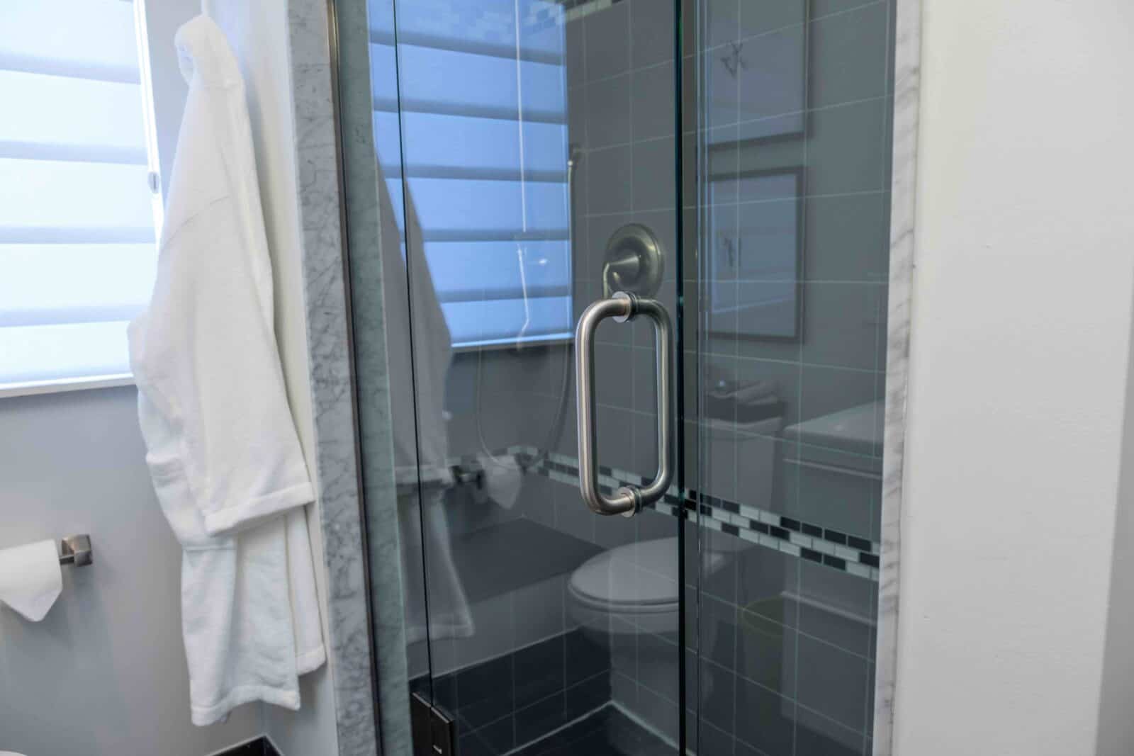 Installing a glass shower door in the bathroom was a non-negotiable—it needed to be updated to tie into the rest of the home. This perfectly integrated custom enclosure (and a swanky rain showerhead for good measure) create a hotel-like ambience. All that’s left to do is throw on that fluffy robe.