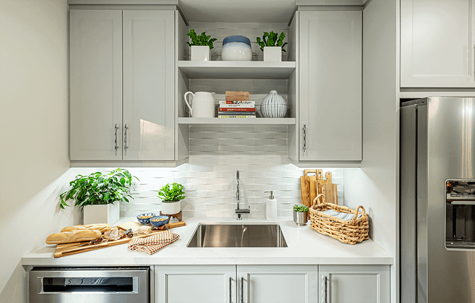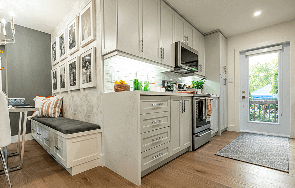 Irina and Dean’s home is a special place, and not just because they had their wedding in the backyard. Even though the house was relatively small, they thought of it as their forever home, because they were told they couldn’t have kids. That’s when the miracle happened: two of them, in fact, in 2-year-old son Matai and two-month-old daughter Adalynn. Now, this amazing family needs more space in a home that’s bursting at the seams with love and people! We re-styled the living room, installed a galley kitchen with more space than you’d expect, and did something we don’t typically do: put up walls, for Adalynn’s nursery.