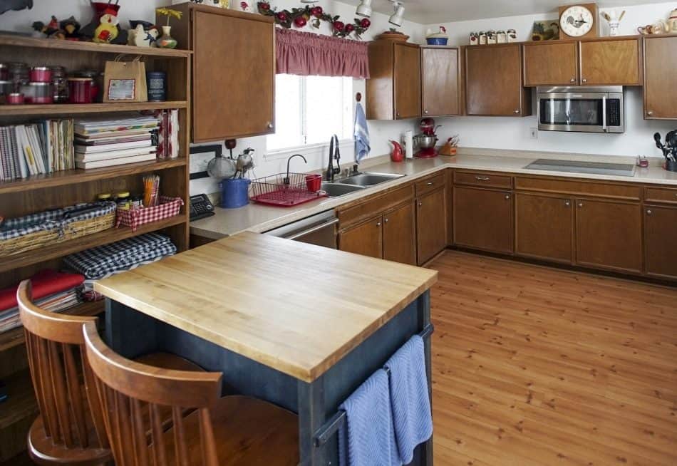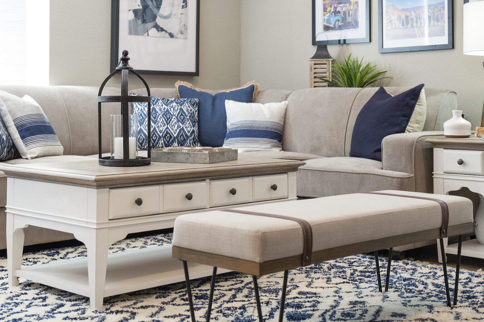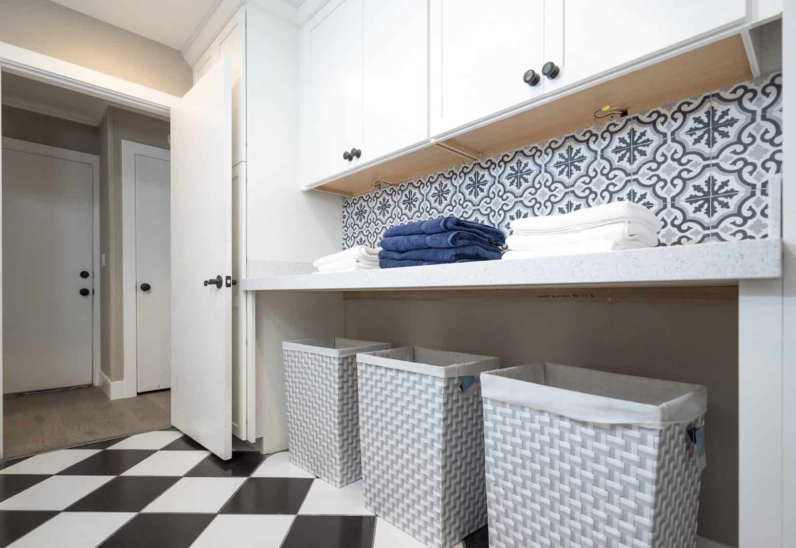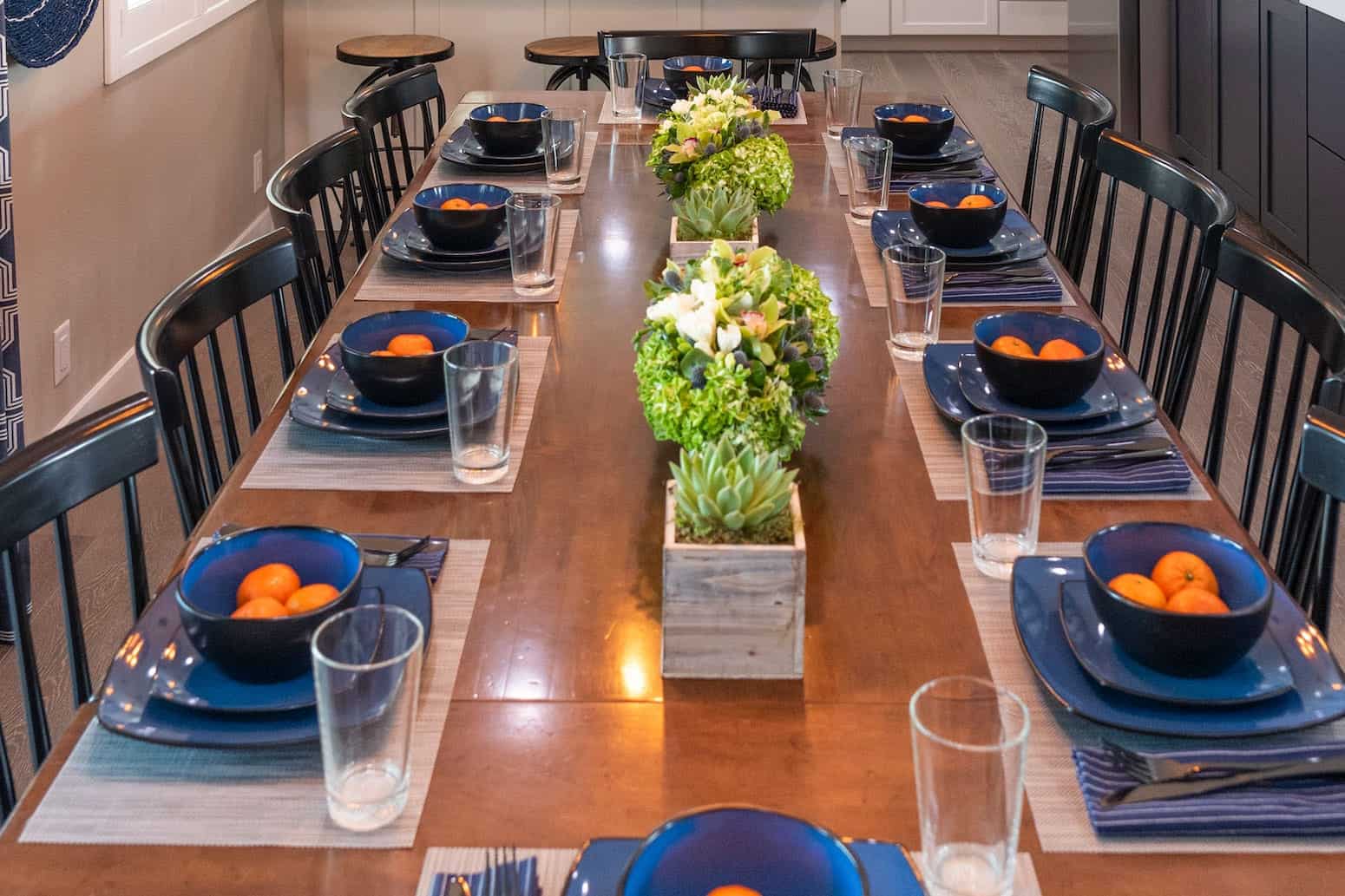 It’s no surprise that James and Crystal want to stay in their charming single-story home rather than moving: In the 17 years they’ve lived there, they’ve raised 30 kids and made countless memories. But in order to function for this special family, the house needed a lot more space, style, and storage. With the couple’s approval, we created a stunning new kitchen, a dining space for 12, and two separate entertaining areas. And throughout the home, we made sure to incorporate kid-friendly decor, like a graphic rug in the living room to hide potential stains and custom shelving for toys and picture frames. Keep reading for an inside look at three of our favorite design details from this farmhouse-chic renovation.