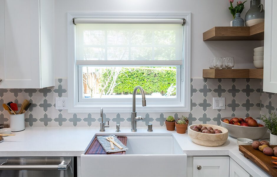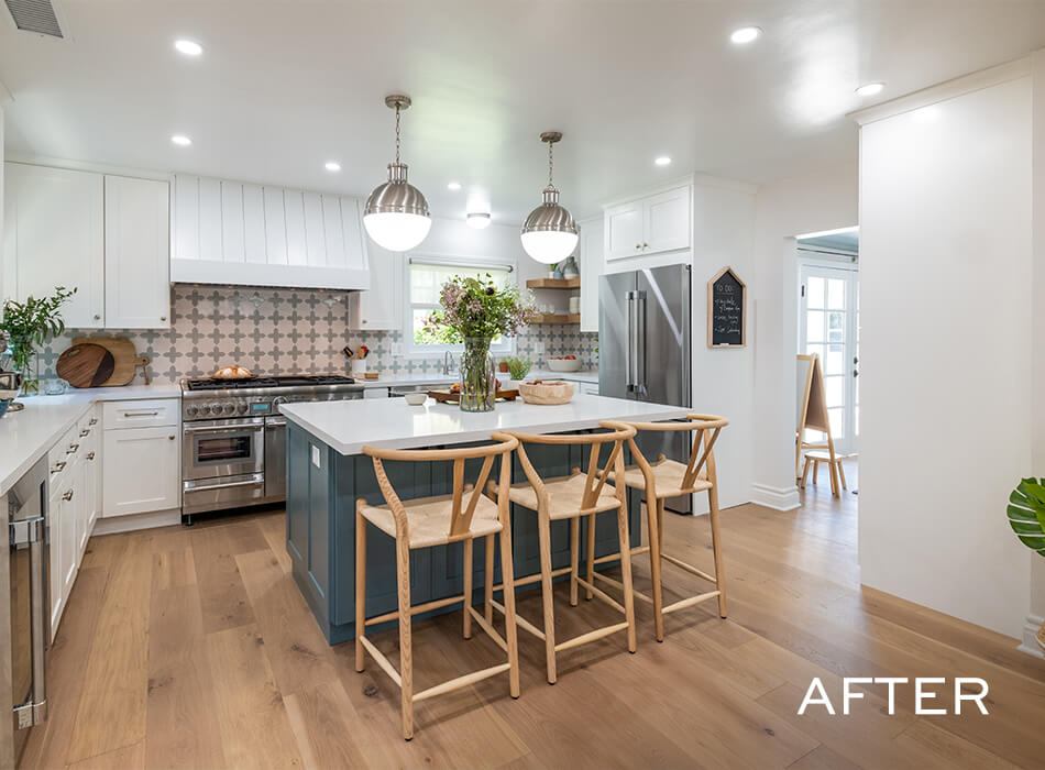 Janet and Kristopher moved closer to family while thinking they’d move again soon, but three years and two boys later, they’ve fallen in love with the house—but maybe not its outdated quirks. We modernized the kitchen, fixed structural problems in the kids’ playroom, and updated the look and feel of the living room to give them an open, welcoming home they can fall in love with all over again.