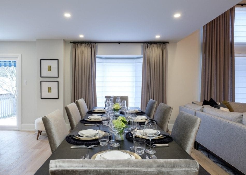 These empty nesters were ready to downsize, and in order to lock in their new dream home, we had to make this dated one much more appealing to potential buyers. We spent a good chunk of the budget restoring the stunning spiral staircase in the entrance, and high-impact upgrades like wide-plank hardwood throughout left everyone—including us—floored.