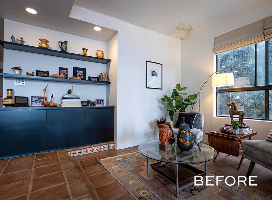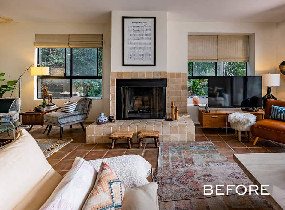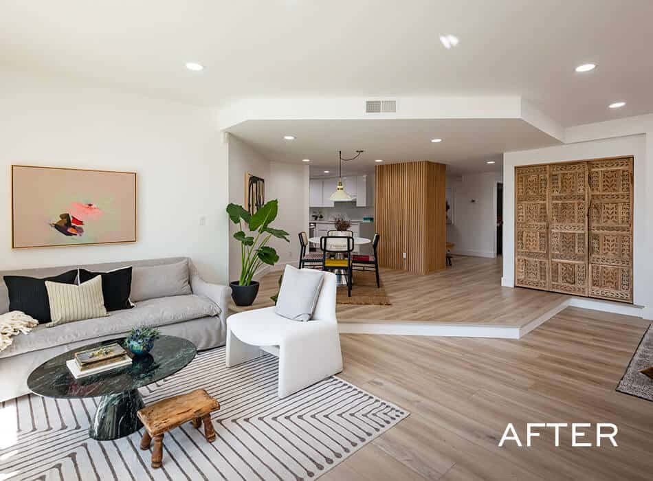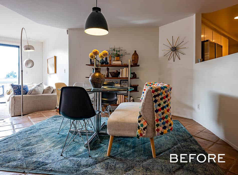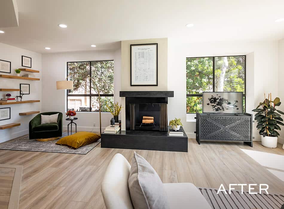 Before, Thea’s living room was constrained by an awkward half-wall cutting between it and the kitchen. Once we took that down, the space really opened up and felt more welcoming. Plus, the new vinyl flooring is both stylish and tough enough to handle five pets.