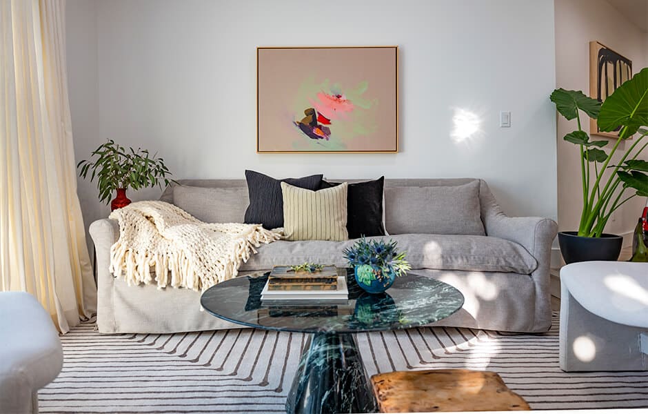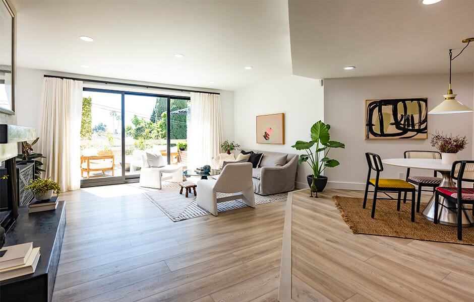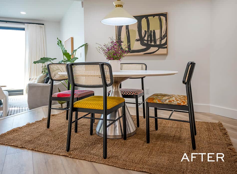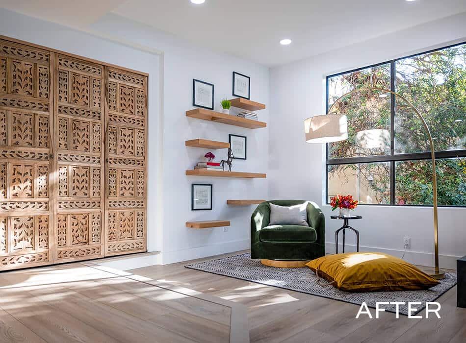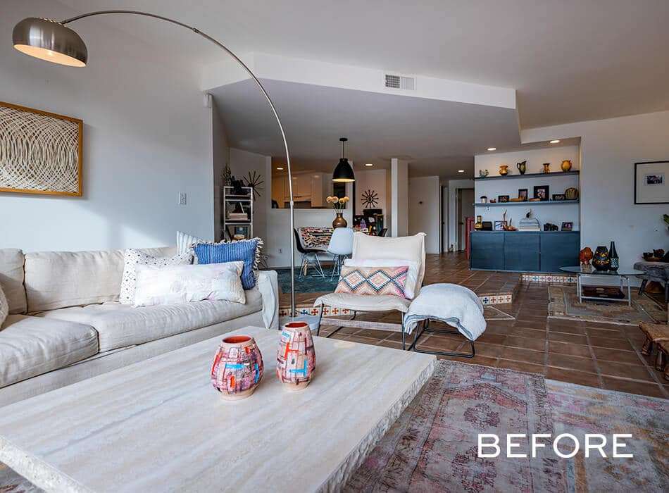Before, Thea’s living room was constrained by an awkward half-wall cutting between it and the kitchen. Once we took that down, the space really opened up and felt more welcoming. Plus, the new vinyl flooring is both stylish and tough enough to handle five pets.