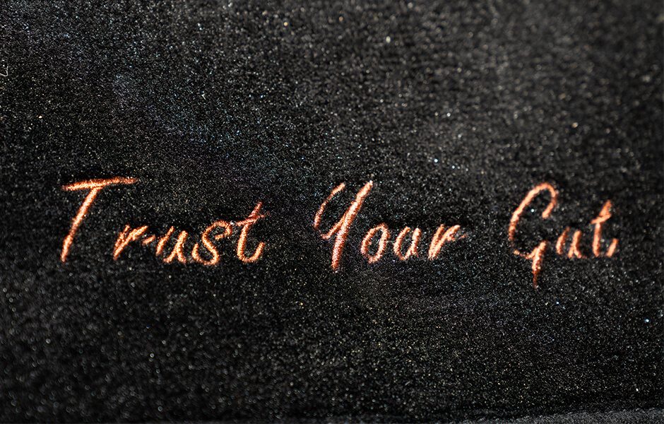 For the headliner, we went with Alcantara, a smooth, synthetic suede-like material that’s easier to clean than suede and creates a plush, luxury look. (Louis Vuitton uses Alcantara linings in many of its bags.) Now, Nicole has an interior that lets the chrome and copper highlights sing, as Nicole turns the speakers up in her brand new ride.