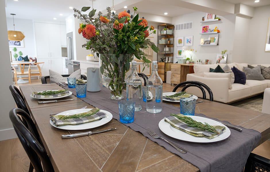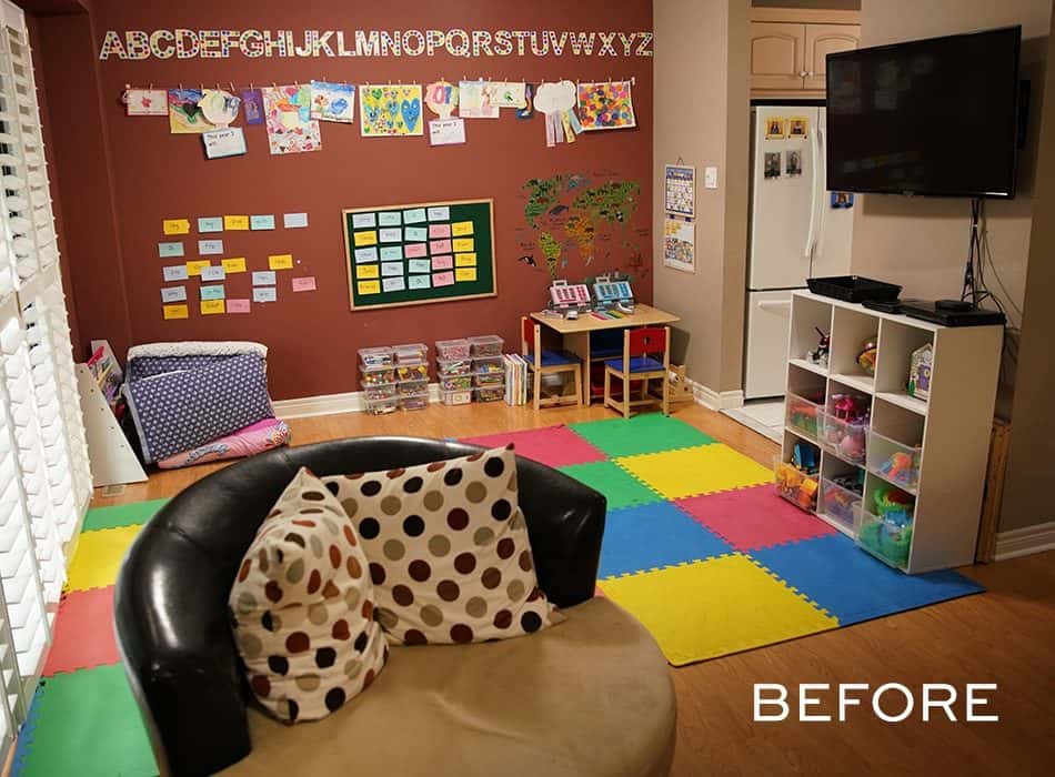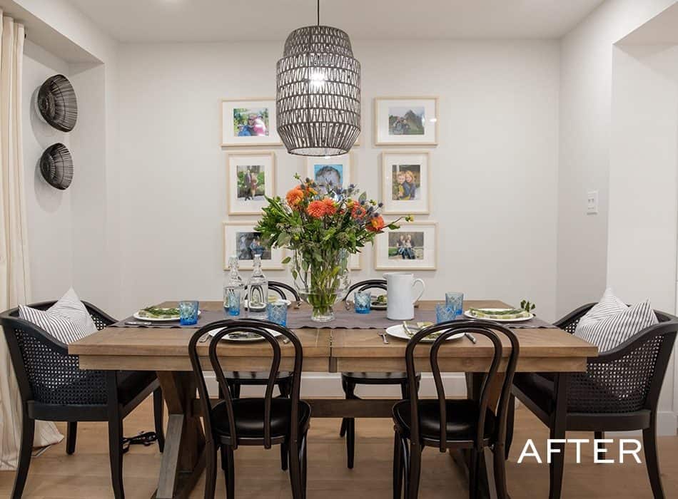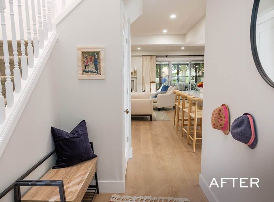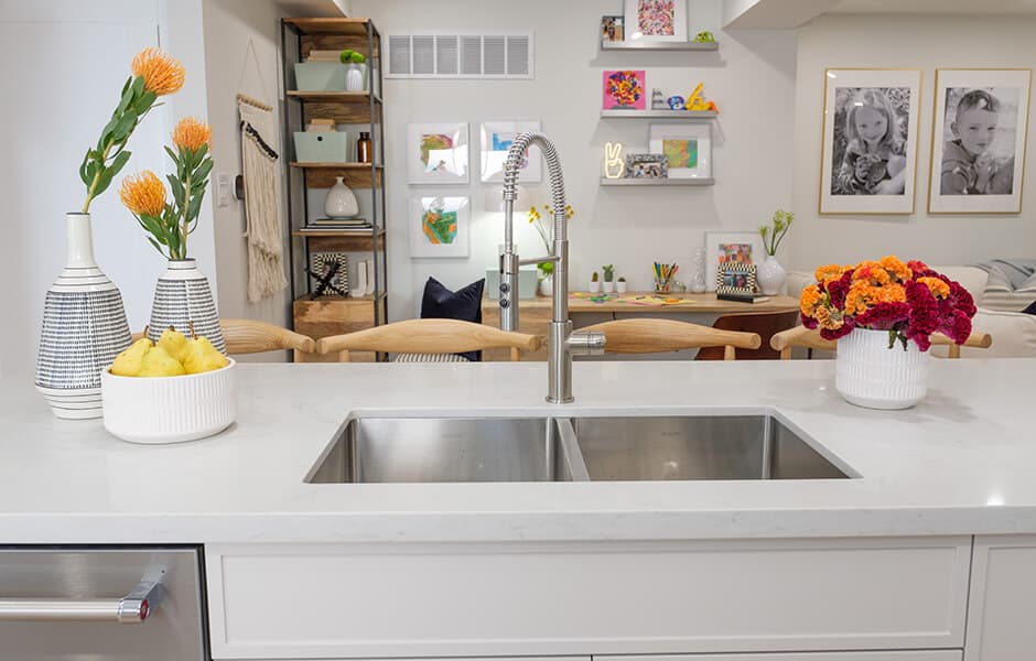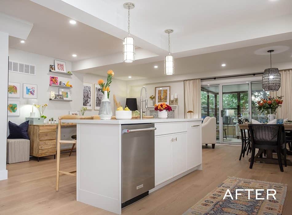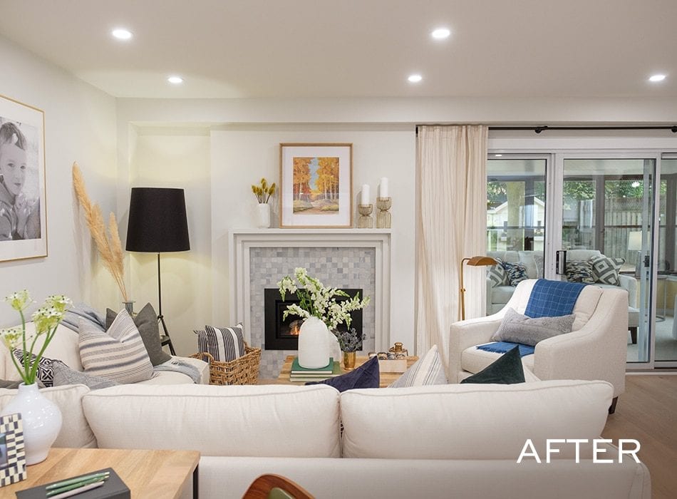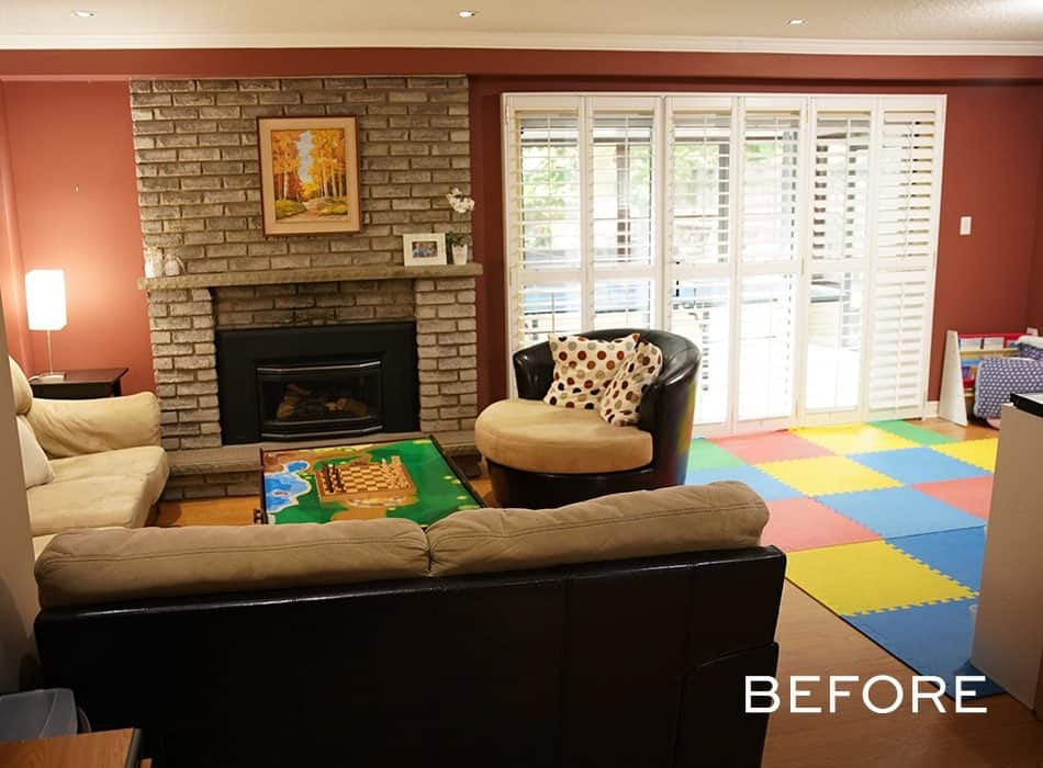Michelle and Brian’s forever home has been in their family for 20 years: 10 years with Michelle’s mom, and now 10 years with Michelle and Brian, who added twins to the happy family. After two decades, it was time for a little more space and a lot of updates. We got to work opening sight lines and adding storage to the kitchen and dining room while tackling a beast of a fireplace in the living room. And, despite Drew’s misgivings, we moved the ping pong table to the basement and made the sunroom into a comfortable seating area.