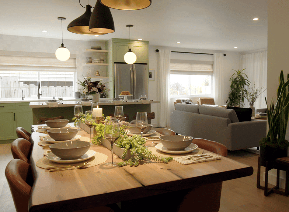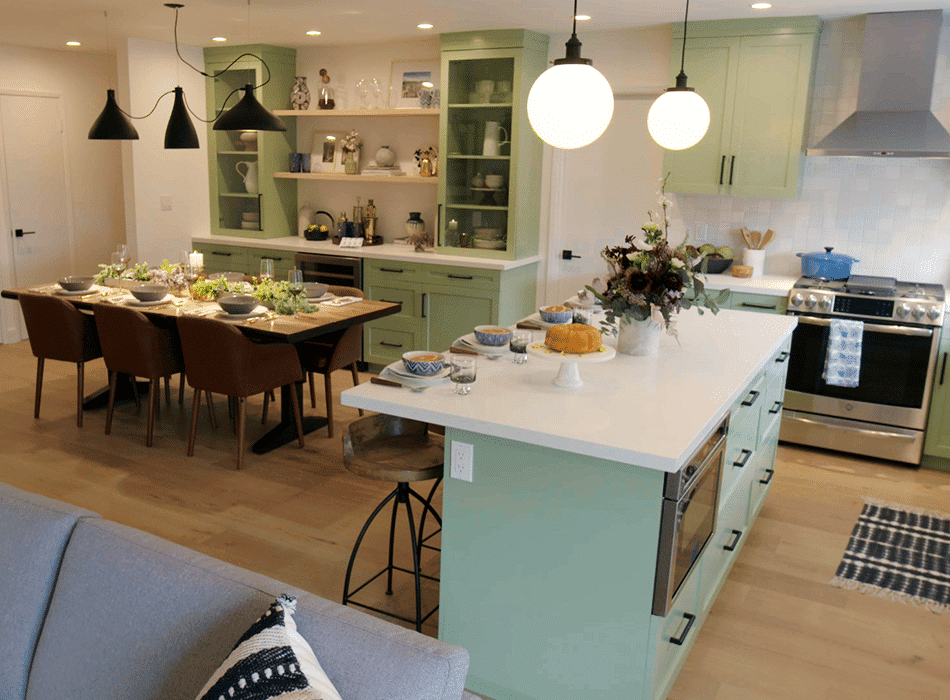 Our first-ever episode of Property Brothers: Forever Home had a little bit of everything we love—a tight-knit family, a stunning renovation, and happy surprise for us at the end. (No spoilers here!) Nora and Diego bought their home because it’s large enough to share with Diego’s parents and abuelita, host dinners with extended family, and grow into when they have children. But all that square footage wasn’t being utilized properly. So we swapped the location of the dining room and kitchen, which gave the dining area more space and the kitchen lots of natural light. We also removed the wall separating the living room from the entryway and kitchen, creating one big open space for everyone to gather. Once these structural solutions were in place, we got to work customizing Nora and Diego’s forever home with design features they’ll love for years to come.