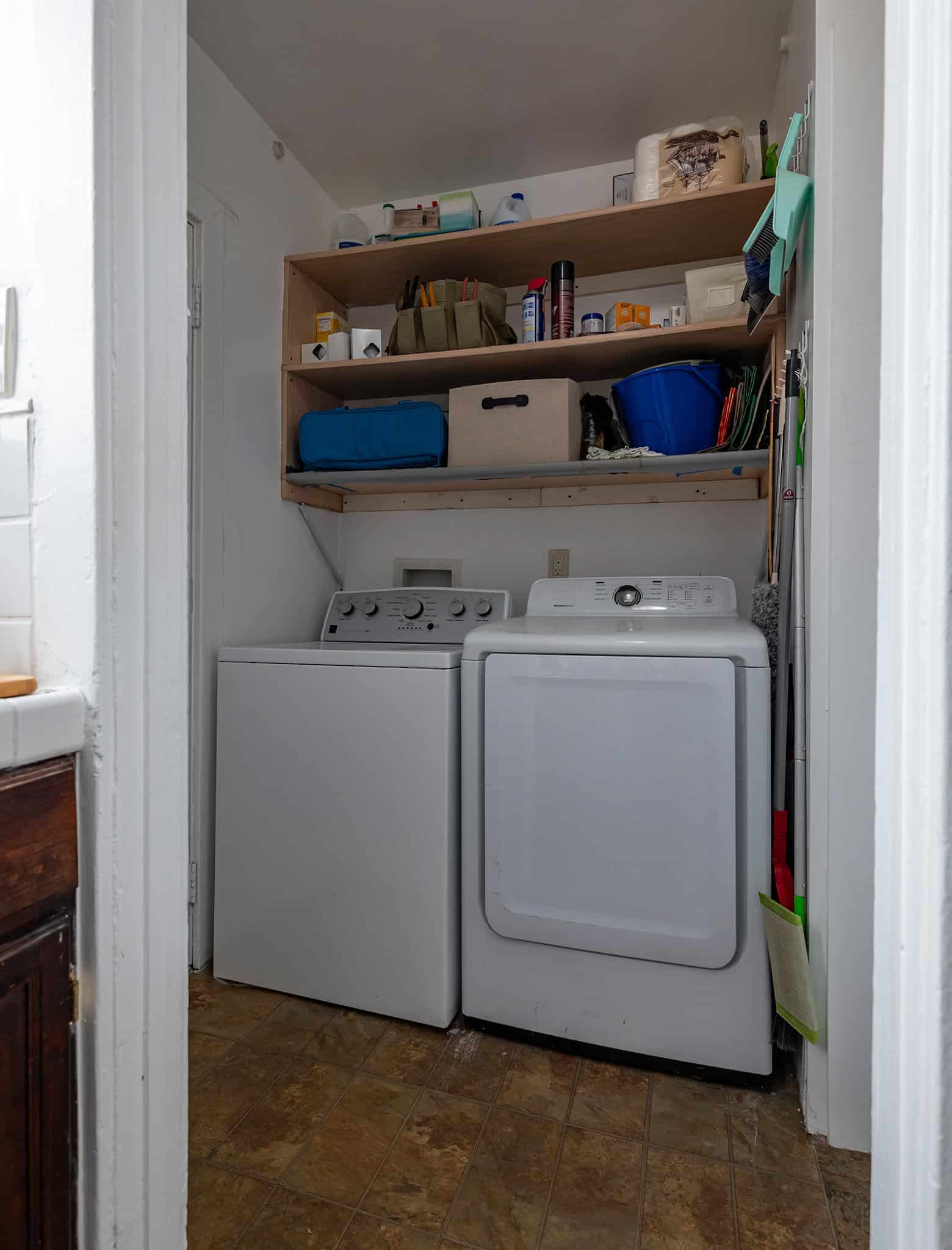 The old laundry room was totally jumbled and rather uncomfortable for Liz to navigate. Even Drew and Jonathan had to reach up to get to those top shelves! There was also illegal electrical work that they had to fix, and less-than-sensible organization.