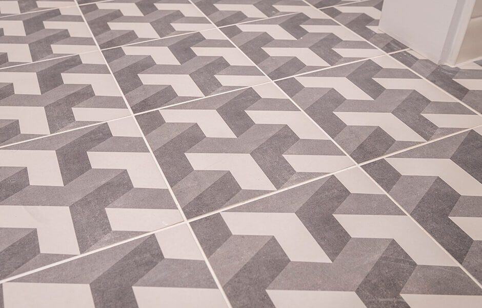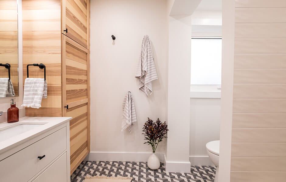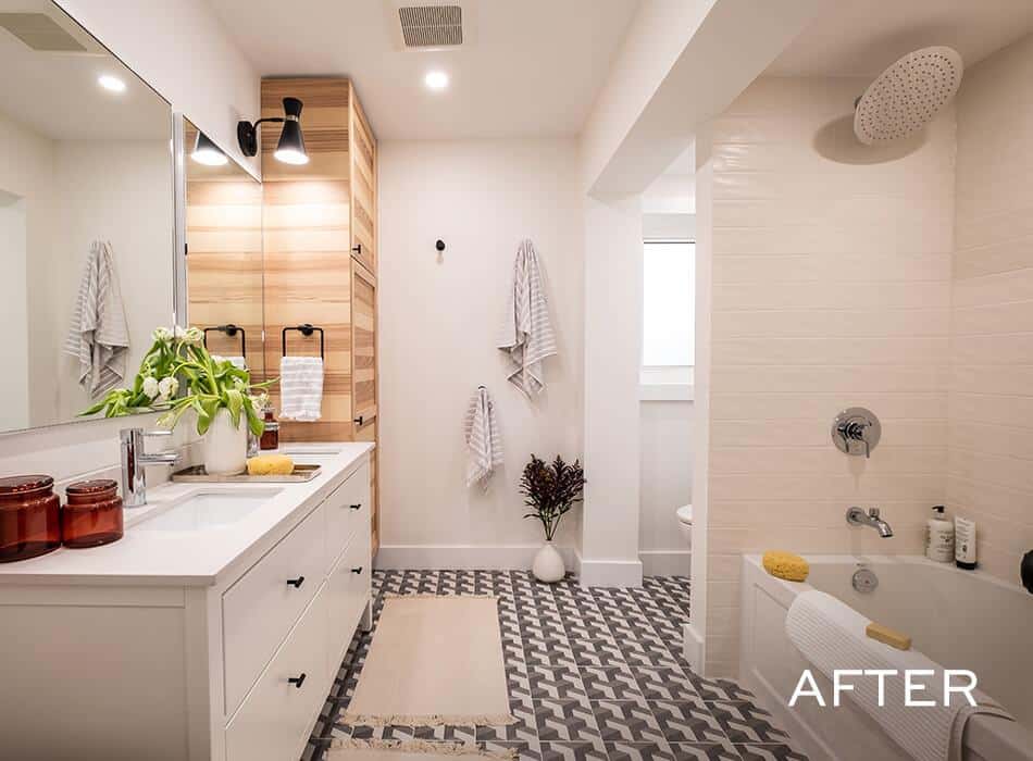 Sam mentioned in our inspiration tour that she wanted to see something a little more unique with our bathroom re-do. We landed on creating a spa-like environment with an intriguing tile. We chose this fun, bold gray pattern to entice the eye without feeling distracting.