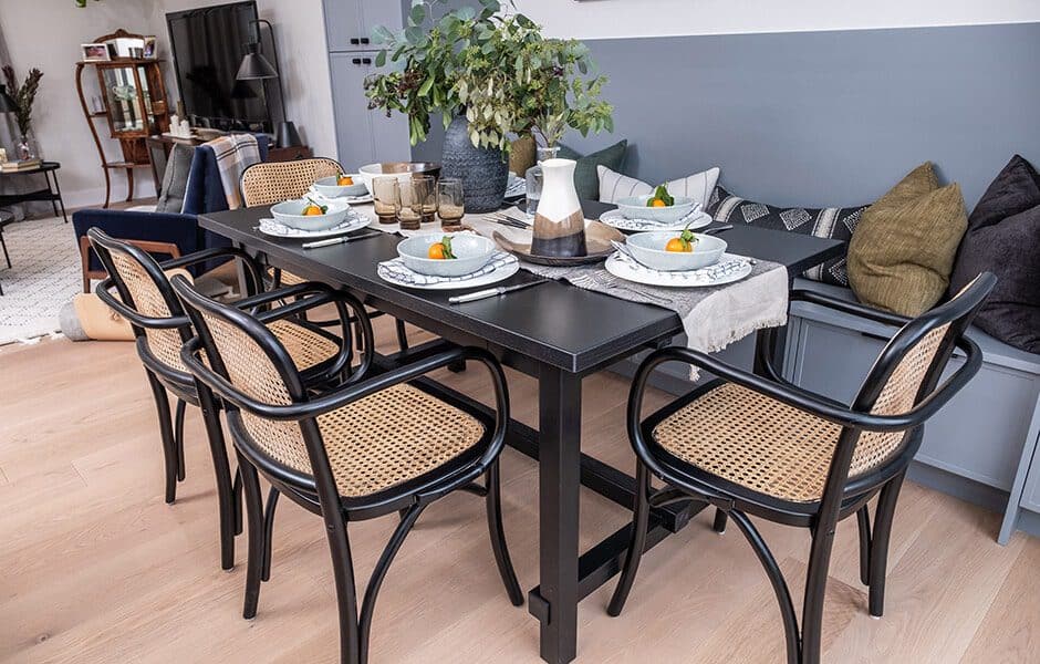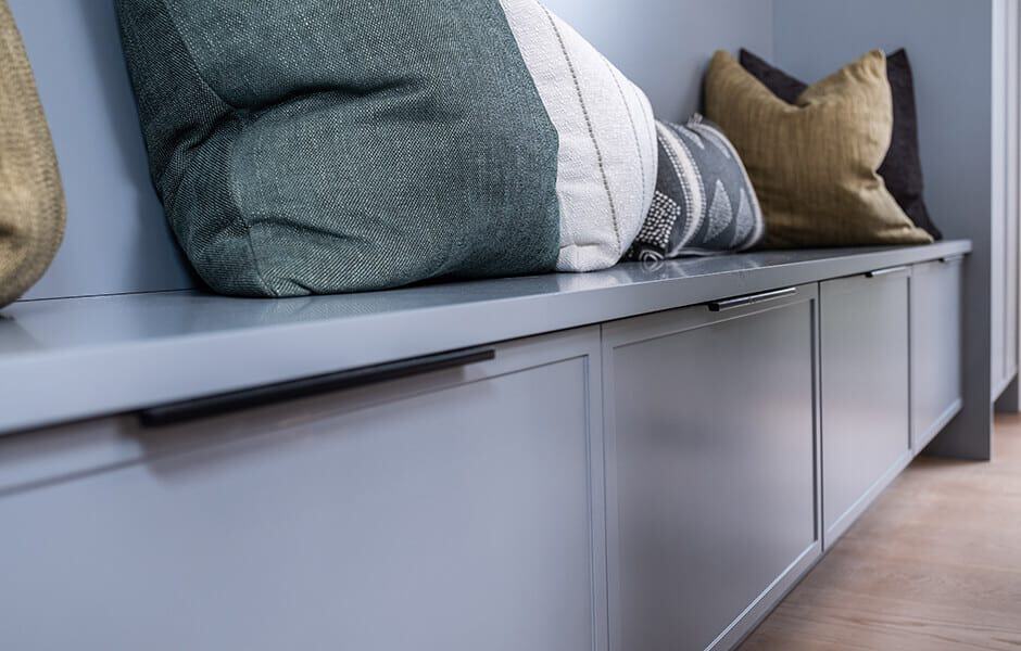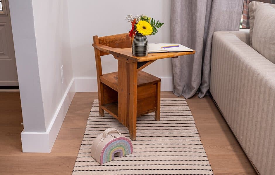 Avery gave us a very detailed (and lengthy) list for her birthday, which included a table big enough for a pizza party. And if you’re gonna have a table big enough for pizza, you gotta have the seating to go with it. Our banquette solution not only brought the seats, but also the storage.