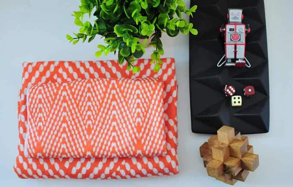 Meet the bathroom’s showcase feature: blue-green shower tile in an intricate parquet pattern, set off by a crisp, thick grout line. The whole thing brings visual interest and brightness into this tight space.
