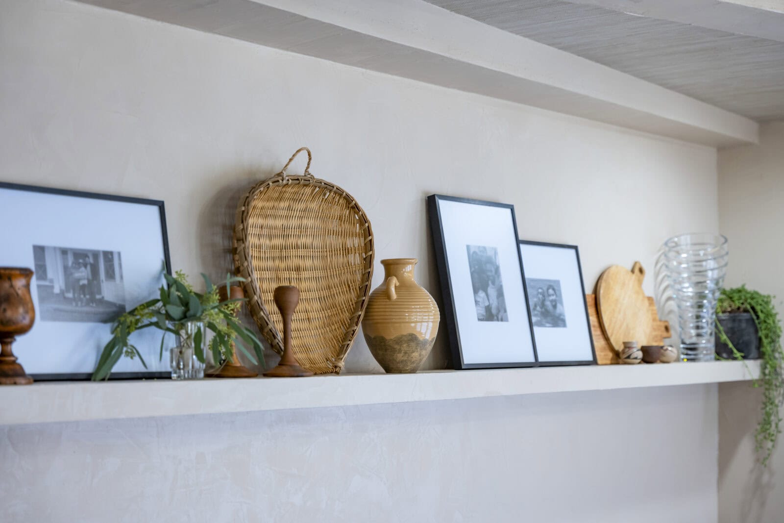 Putting Zoila’s collectables on a beautiful display with elongated open shelving really added the perfect personal touch. Her kitchen and dining room are not only beautiful, but they’re also beautifully her. Photos, collectables, and memorabilia line the walls and show off her most loved people and memories.
