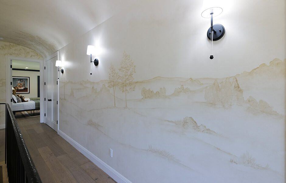 I wasn’t going to let Jonathan get all the credit for creative ceilings. I installed a barrel ceiling of my own in the hallway, then took it up a notch with restored ironwork on the staircase and a hand-painted mural that stretched the length of the hallway and up into the ceiling.