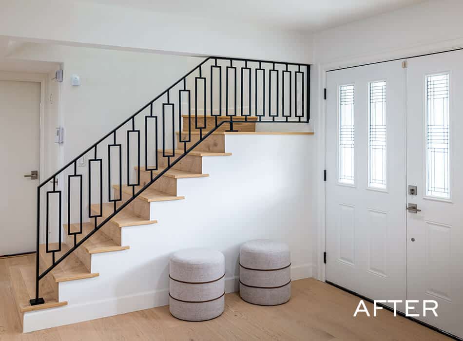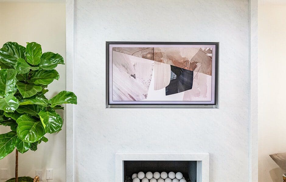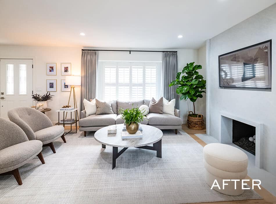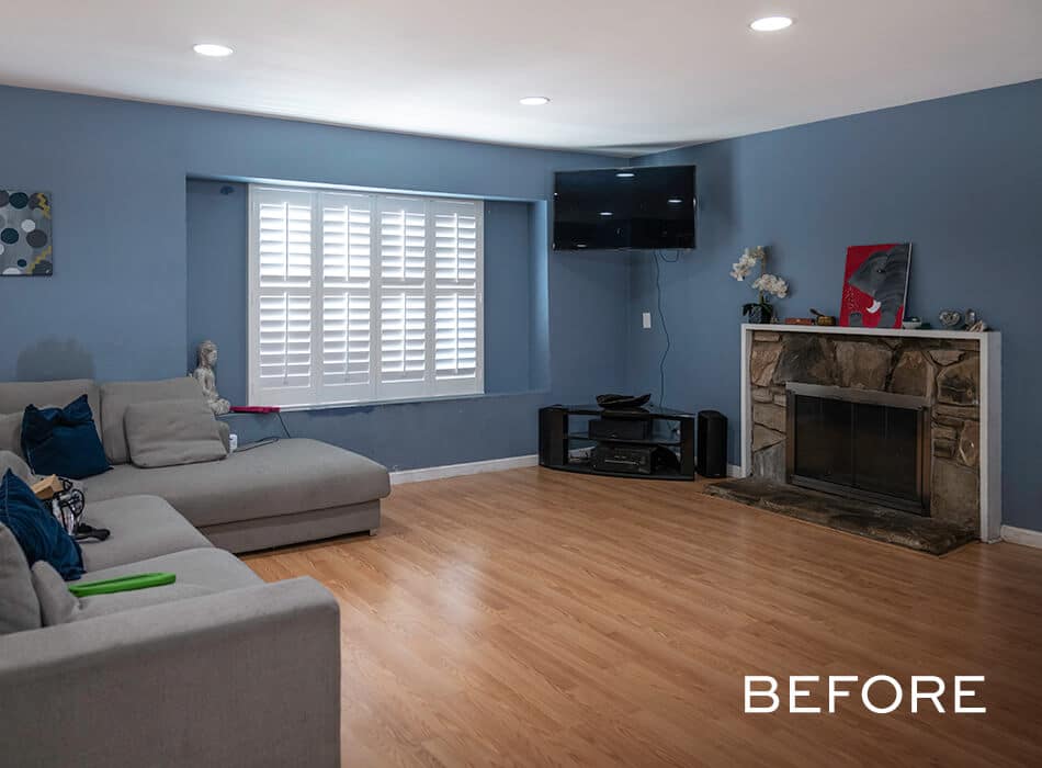 Before, the old, 1960s-styled hearth and TV fought for attention in the living room. Not only did we decide to install a new floor-to-ceiling fireplace, but we were able to install an inset for the TV. Best of all, when not on, it can double as a piece of art.